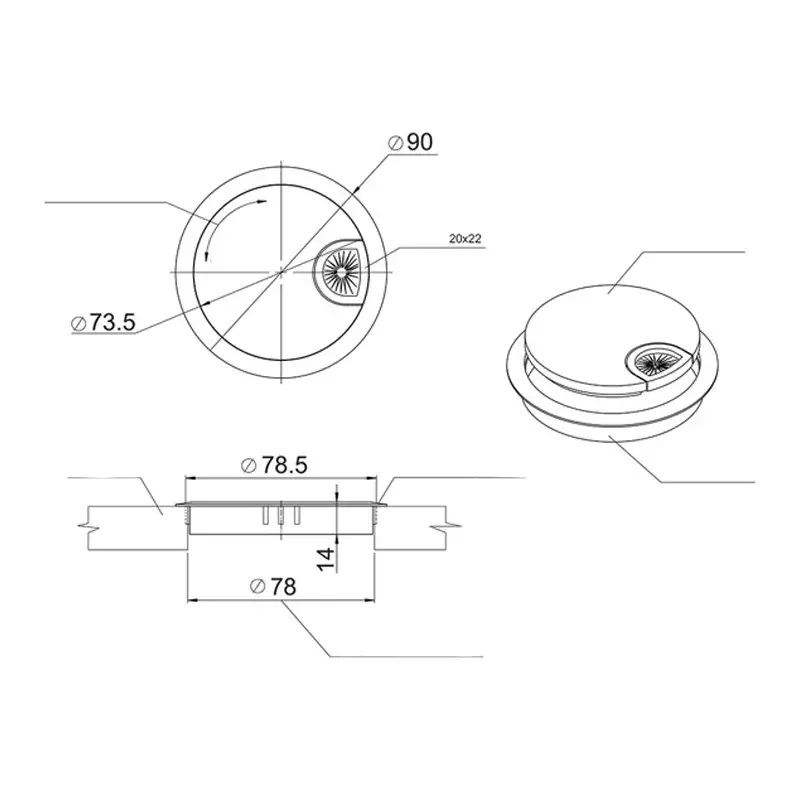 Пропуск для кабелю врізний GIFF Luna d=60мм чорний