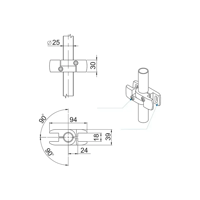 R-52 Муфта для скла і панелі петльова GIFF хром