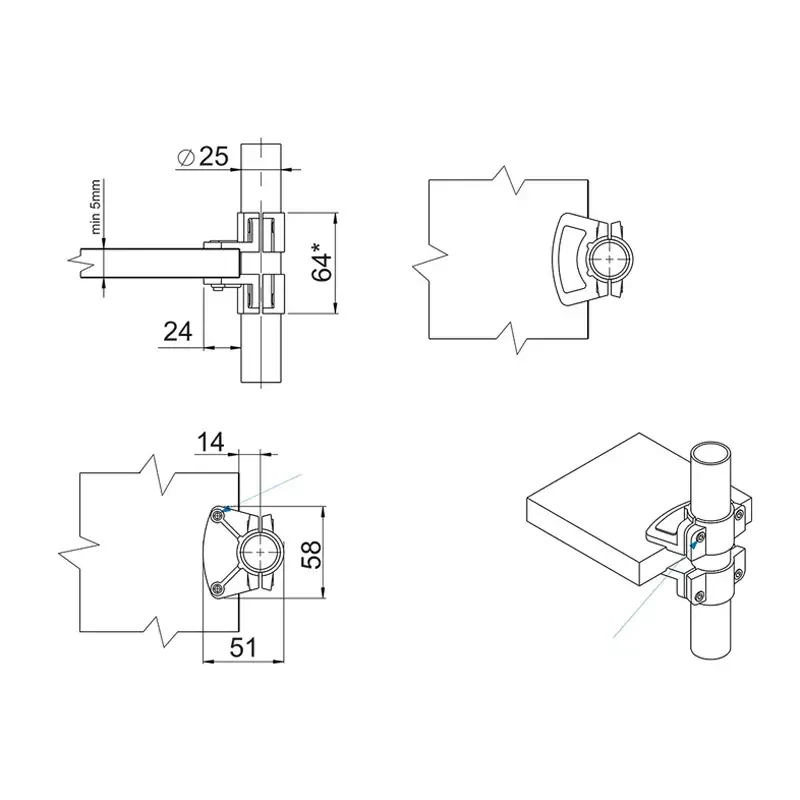 R-61 Кріплення для панелі одностороннє GIFF хром