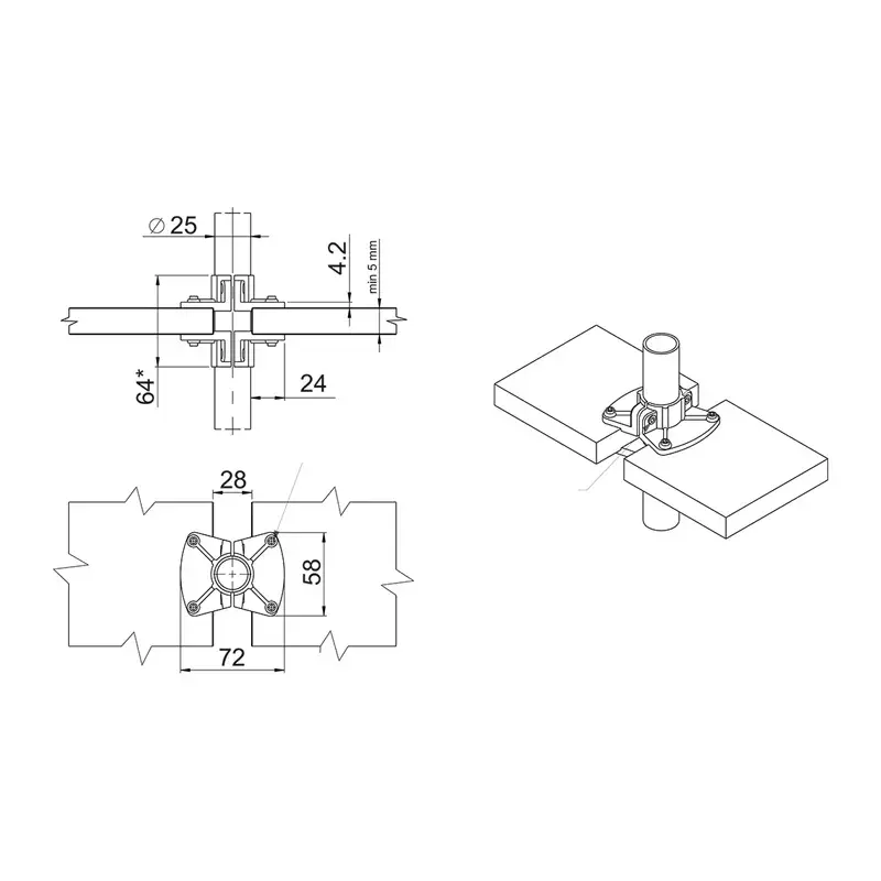 R-62 Кріплення для панелі двостороннє GIFF хром
