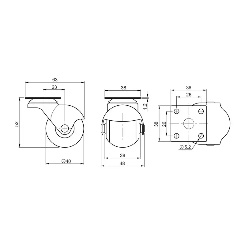 Ролик з площадкою гумовий круглий GIFF Industry d=40 сірий